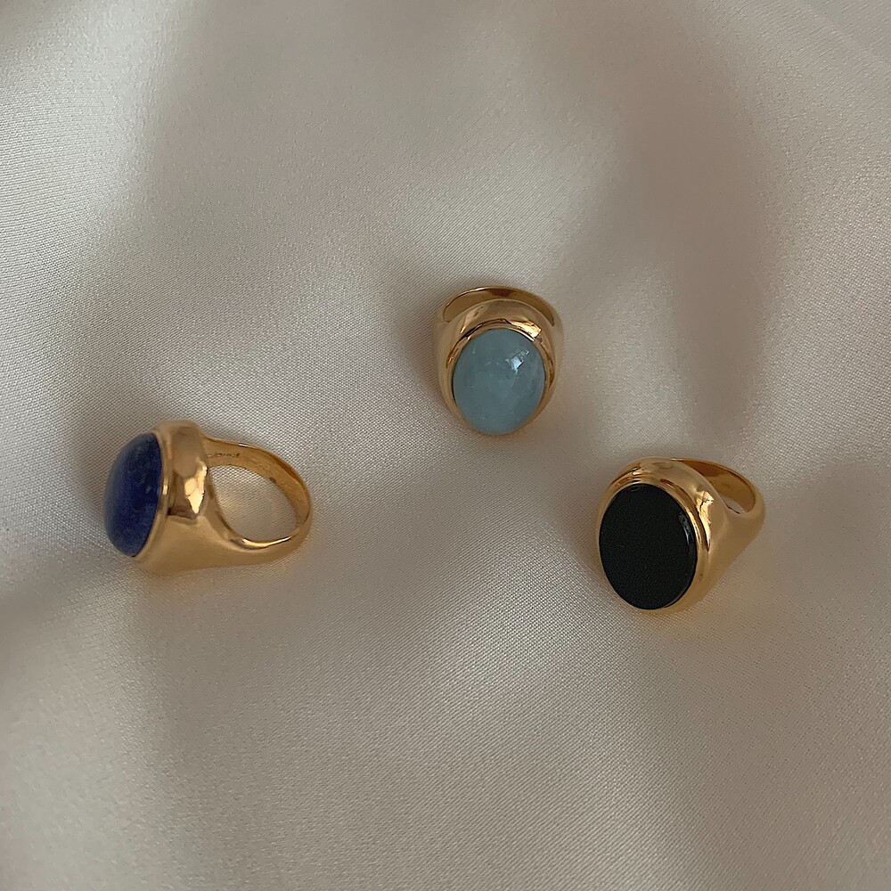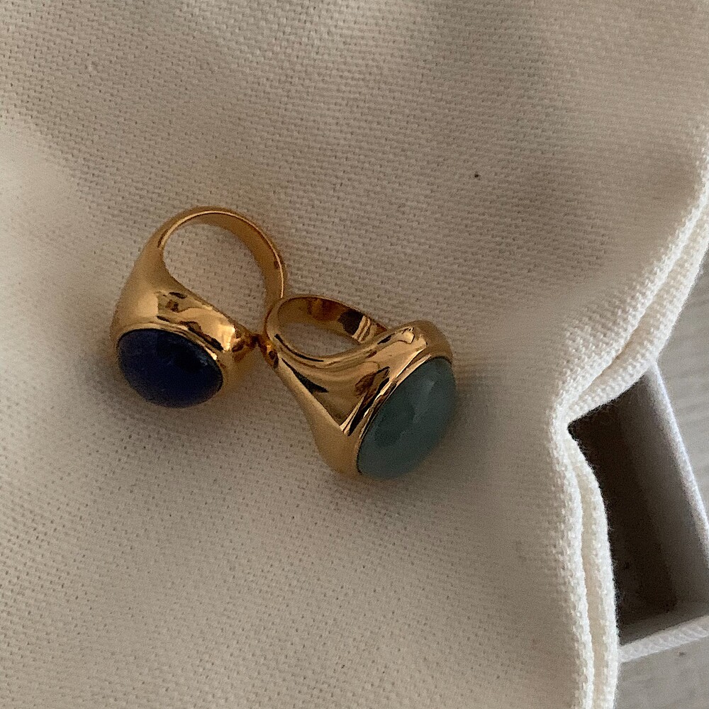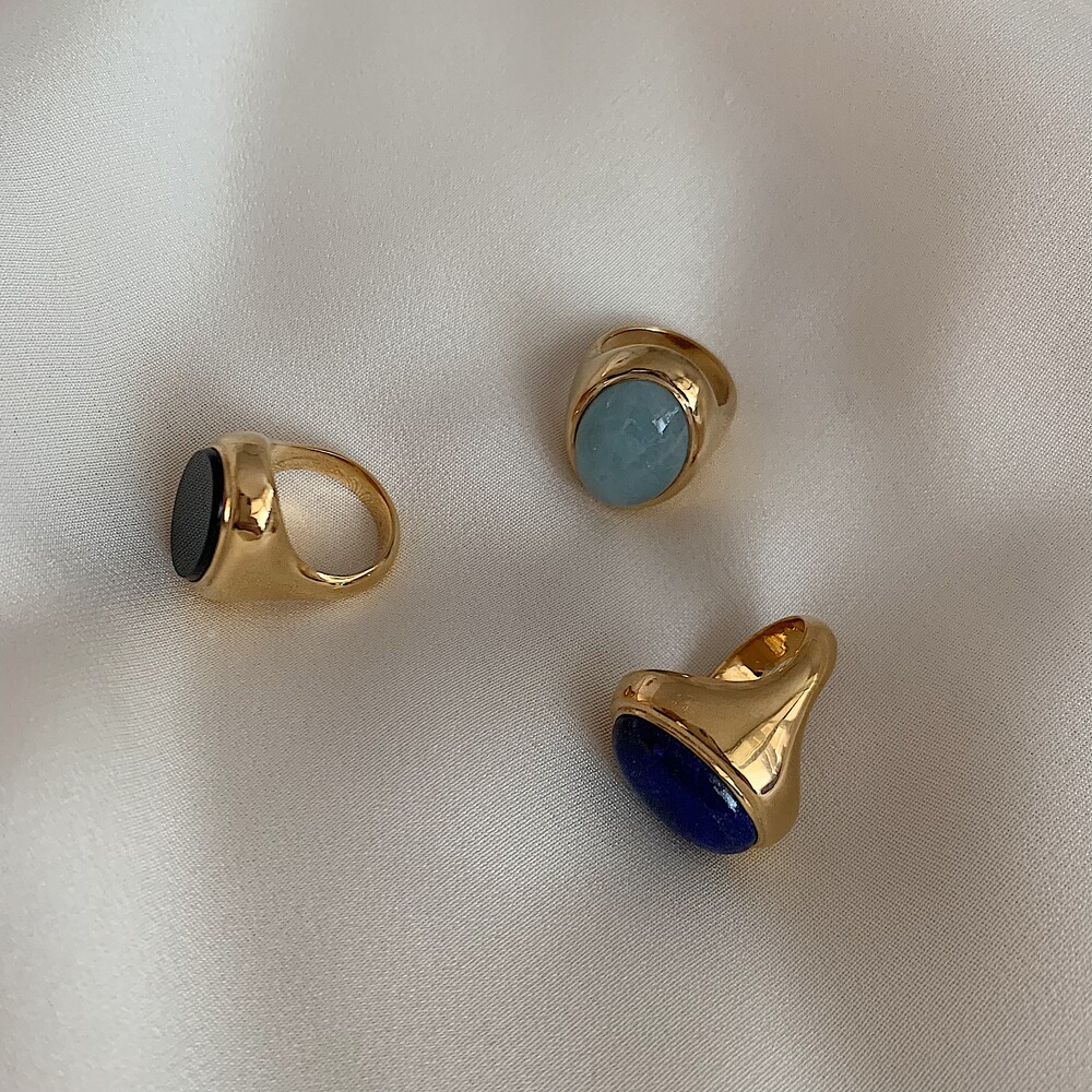 드쥬에 시그니쳐 볼드링에 다채로운 컬러감의 유니크한 원석들을 더하여 완성된 시그니쳐 디자인입니다.