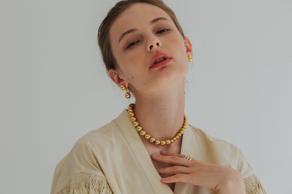 볼드한 볼의 사이즈를 믹스하여 재미있는 요소를 더해주었습니다.자석클립 장식으로 편하게 착용이 가능한 제품입니다.